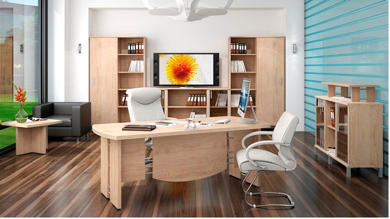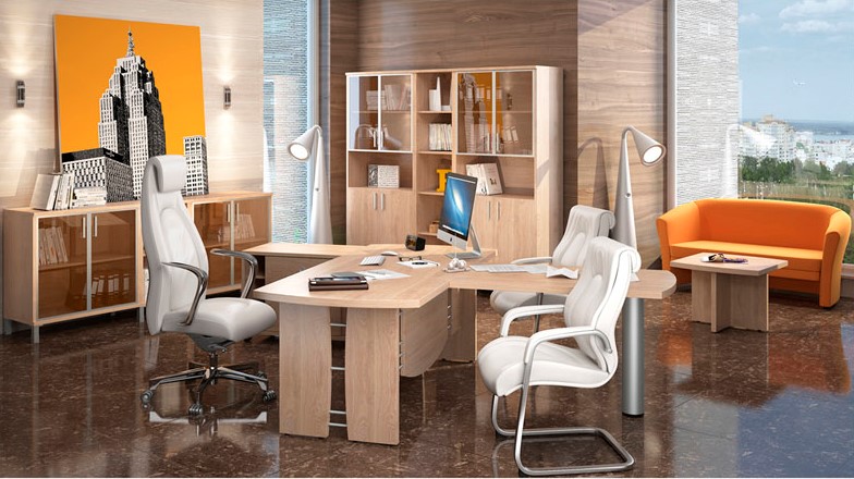 Главная особенность этого кабинета — возможность варьировать рядом составляющие его элементы, исходя из ценовых и дизайнерских пожеланий Заказчика. Заменяя одни элементы другими, Вы сможете существенно снизить цену, не потеряв при этом в качестве и функциональности. Кроме того, с помощью большого выбора элементов можно подчеркнуть классический стиль кабинета или сделать его ультрасовременным. Яркой и необычной деталью станут двери-купе у шкафов и тумбочек.