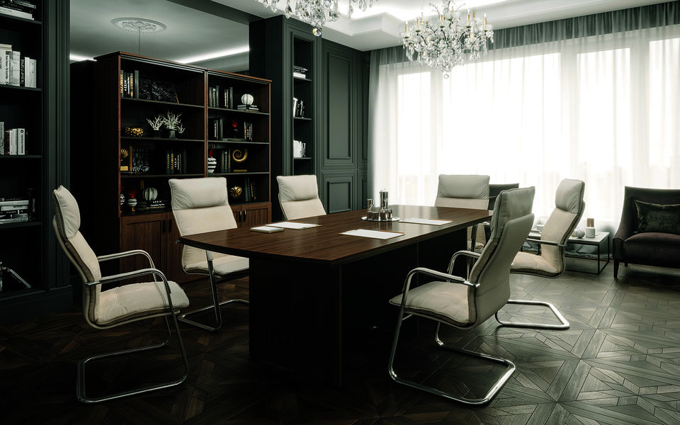 Модельный ряд также предполагает оснащение мебелью конференц-залов и переговорных комнат.