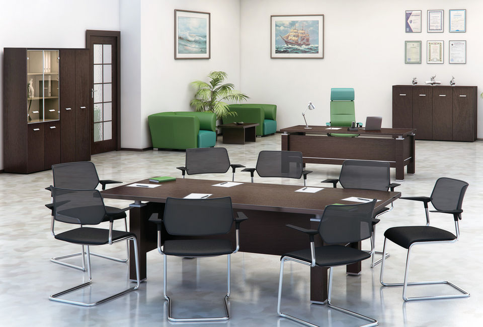 Кабинет руководителя «Бонд» — яркий пример сочетания функциональности и минимализма. Эта коллекция основана на принципах лаконичности форм. Чёткость композиции, строгие геометрические формы и предельная простота оформления — вот главные отличия кабинета. Выразительность дизайна достигается за счёт контрастирующих цветов и материалов: тёплый цвет «венге» оттеняется вставками из алюминиевых/пластиковых деталей.