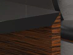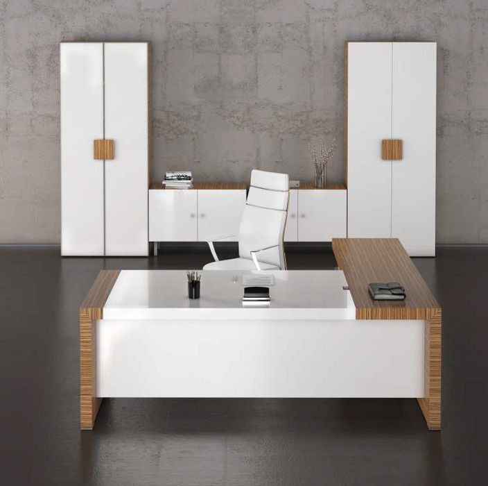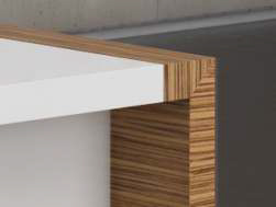 Легкие, ясные линии письменных столов коллекции KYU гармонично сочетаются с цветом и фактурой материала – шпоном из древесины зебрано. Благодаря особой обработке древесины - технике нанесения лака с «открытыми порами» - естественные цвета зебрано радуют глаз яркостью и красотой.