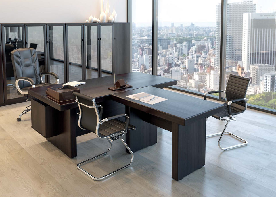 Столы руководителя снабжены бюваром, обтянутым черной экокожей.