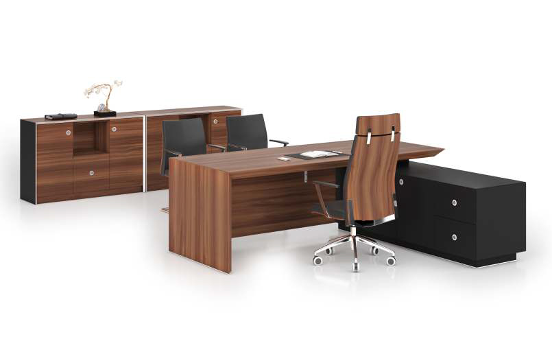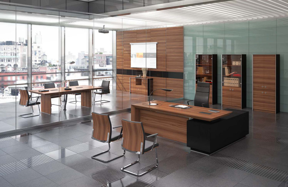 В коллекции предлагается четыре вида рабочих столов Удобные изящные стулья из черной кожи с деревянными спинками и хромированными деталями придадут рабочей зоне целостность и подчеркнут престиж компании. Высокие шкафы со стеклянными или деревянными дверками TECO+ привлекут внимание безупречным дизайном. Их боковые стенки, окрашенные в бархатный черный цвет, оттеняются насыщенным цветом и текстурой ореха.