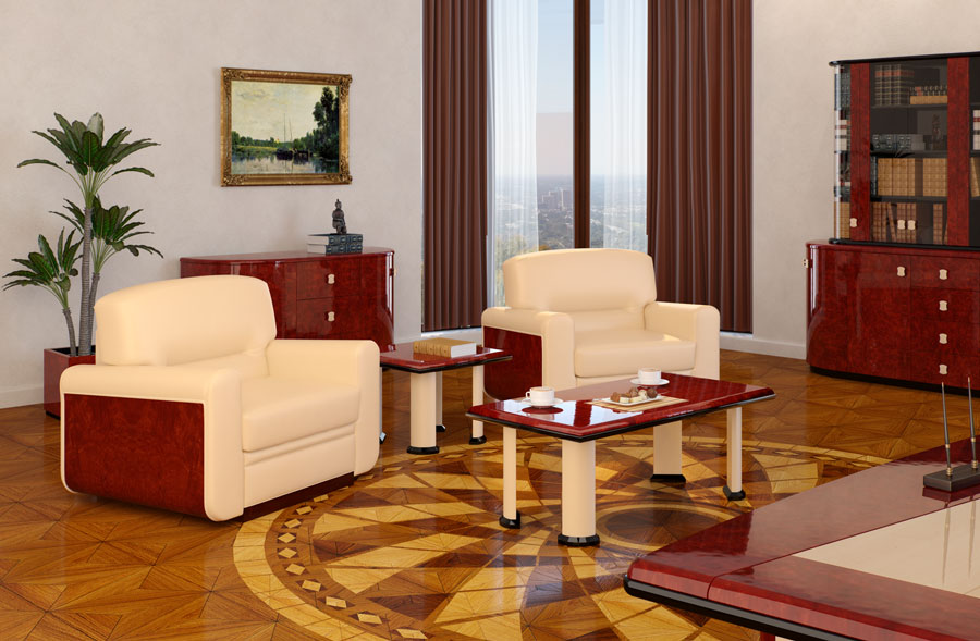 Кабинет руководителя – святая святых любой компании, поэтому для поддержания престижа и репутации глава фирмы лично заинтересован в создании атмосферы респектабельности и богатства на своем рабочем месте. С мебелью коллекции ROMANO Ваш кабинет и приобретет ни с чем не сравнимую элитарность и представительность. Качество материалов и дизайн этой мебели можно сопоставить с оформлением самых дорогих яхт и автомобилей. Тонко обработанные дорогие материалы – шпон корня камфорного дерева и натуральная кожа раскрываются во всем великолепии в мебели эксклюзивных форм.