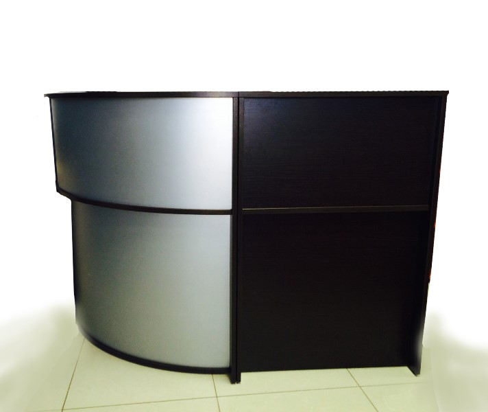 Общая высота стойки Агат - 109 см. Высота рабочего стола - 72 см. Полезная высота между верхней панелью и рабочим столом: 34 см. Столешницы меламиновые, цвета “ваниль”, толщиной 30 мм. Топ меламиновый цвета “ваниль”, толщиной 30 мм, или из закаленного матового стекла толщиной 12 мм с закругленными краями. Каркас - полые металлические опоры. Цвет этого решения алюминиевый.