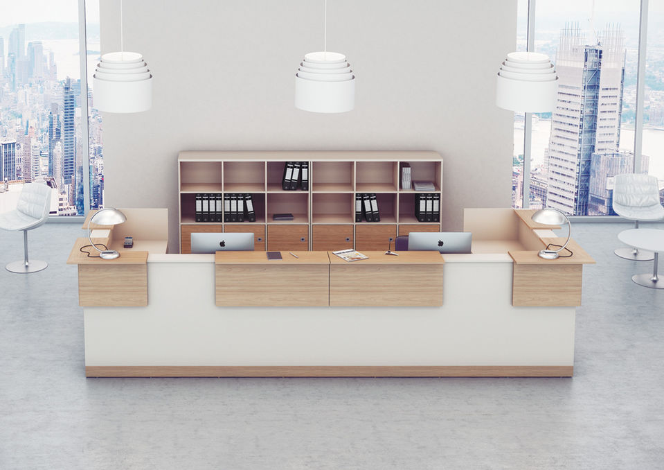 Стойка-ресепшен — центр всех информационных потоков в компании и первое, что видят в офисе посетители и партнёры. Поэтому перед дизайнерами стояла сложная задача: совместить в «Rio | Reception» безупречный дизайн и максимальную функциональность для администратора и посетителей. «Rio | Reception» выполняется в единой концепции с сериями «Rio | Base», «Rio | Direct» и «Rio | System», поэтому